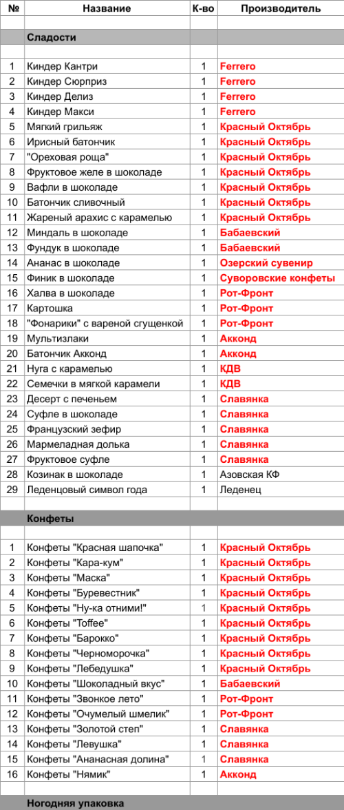 1. Проверить, можно ли внести изменения в состав подарка. Если нет, то скорее всего наборы были собраны еще летом из конфет, произведенных еще раньше