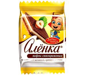 Шоколад "Аленка" с начинкой (1 шт), Молочный Шоколад "Аленка" (1 шт), Батончик "Аленка" с начинкой (1 шт), Шоколадка "Аленка" (1 шт), Вафли в шоколаде (1 шт), Пралине с орехами в глазури (1 шт), Бисквитное пирожное (1 шт), Вафли с орехами и какао (1 шт), Печенье (1 шт), Конфеты "Аленка" ваф. (1 шт), Конфеты "Аленка" крем-брюле (1 шт), Конфеты "Аленка" карамель (1 шт)