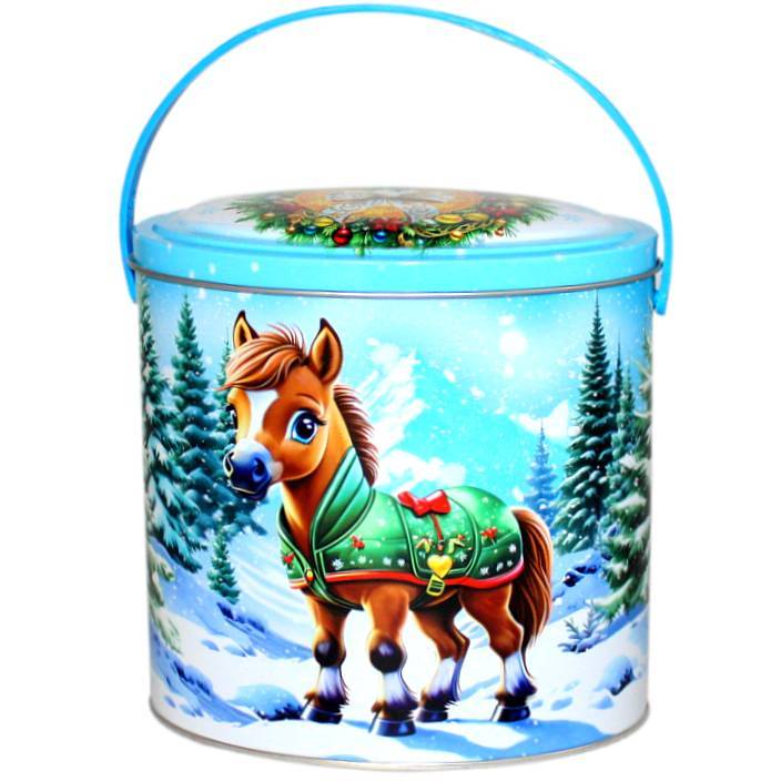 Сладкий подарок на Новый Год в жестяной упаковке весом 610 грамм